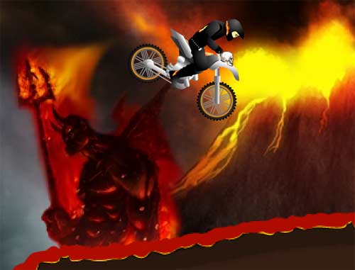 Projedte se pekelne zapeklitý terén a zkuste se nevyválet. Motorku ovládáte šipkami - rychlost i balanc.